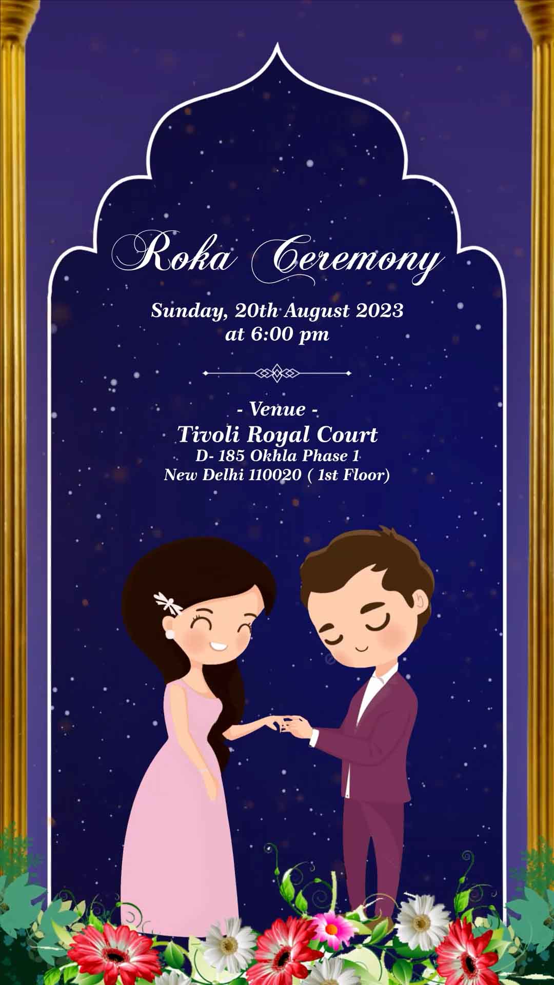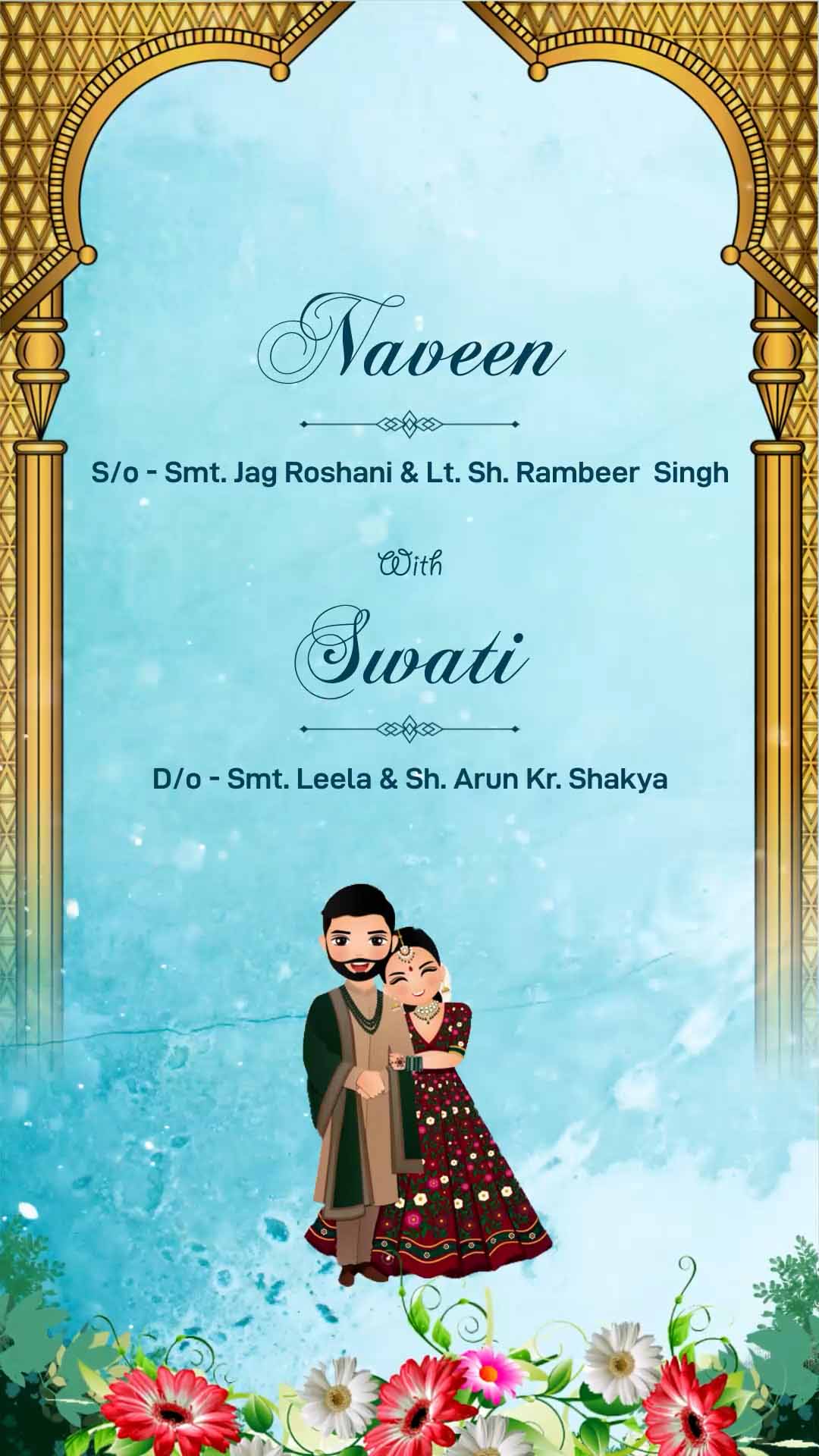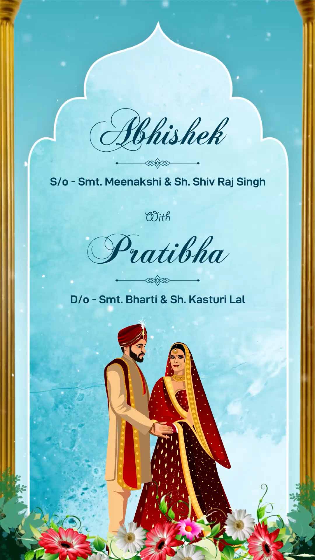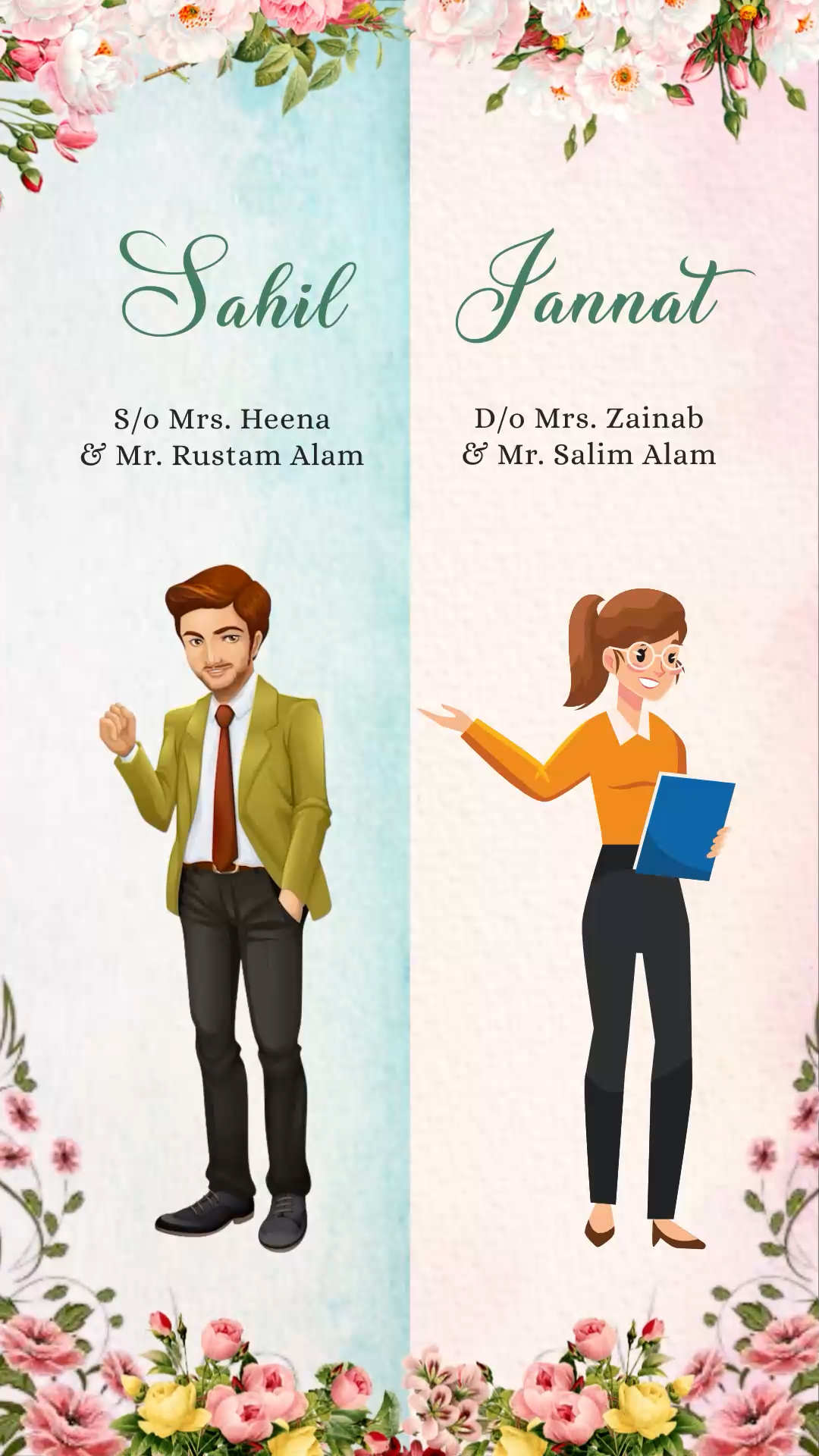 762 Caricature & Beautiful Flowers Muslim Wedding Invitation