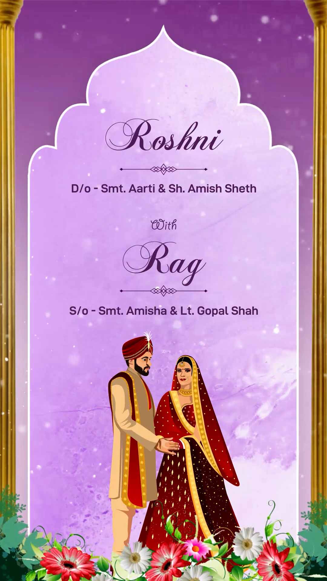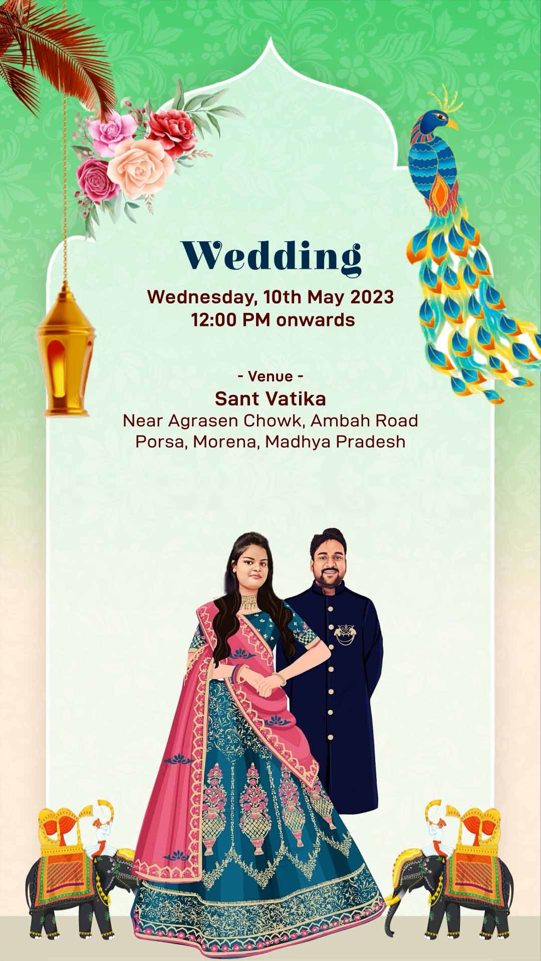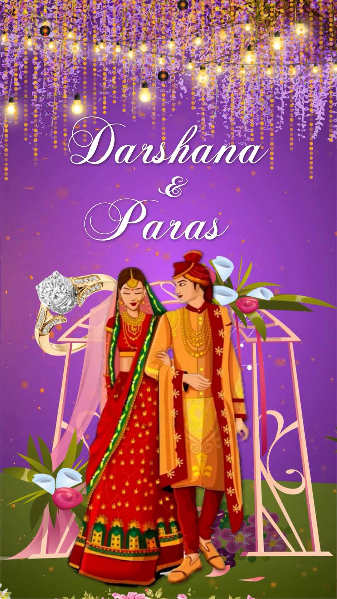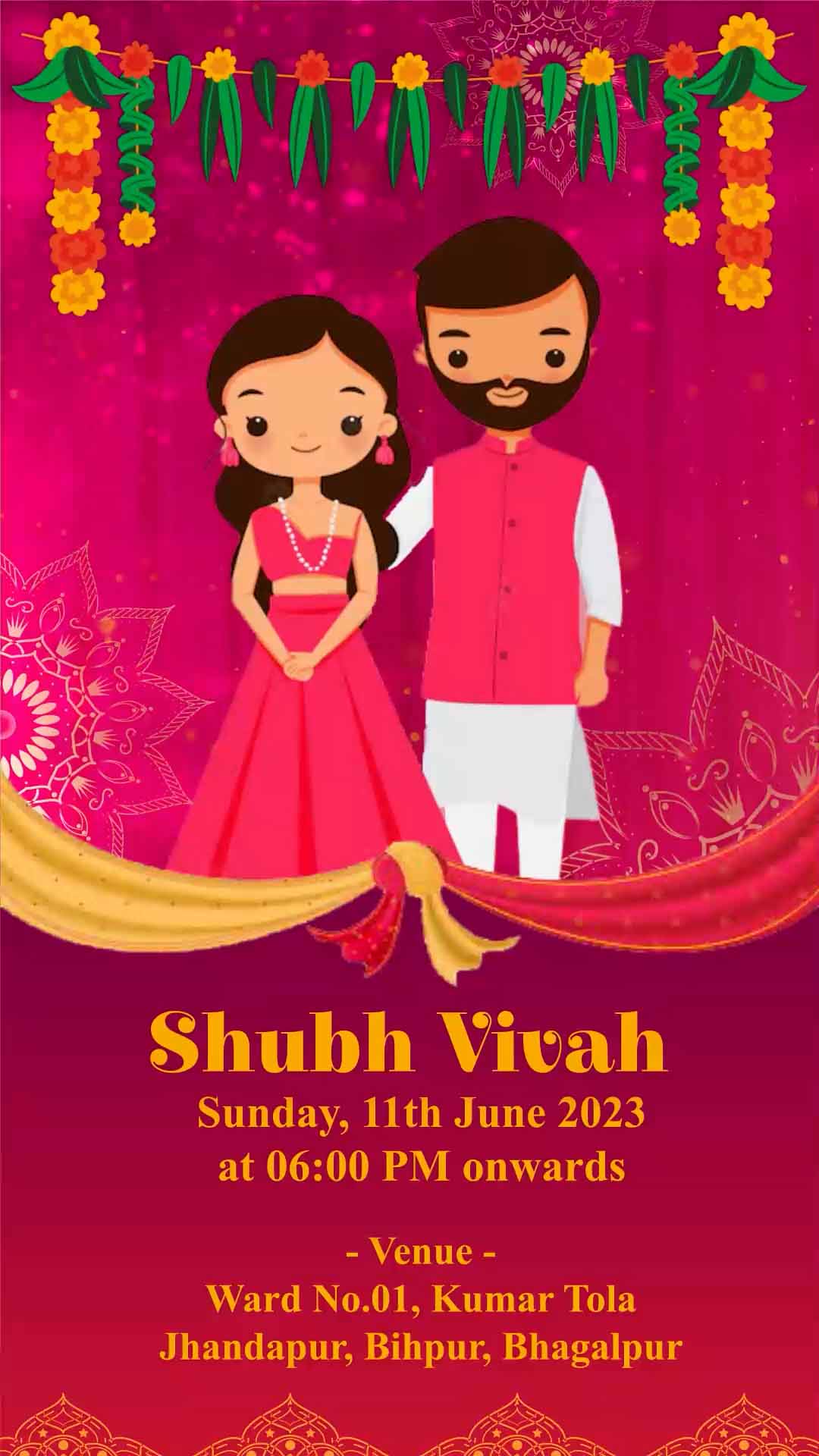 734 - Traditional Indian Wedding Invitation with Cartoons