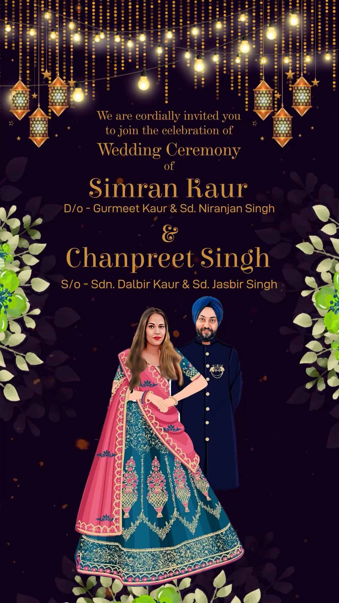 715 - Beautiful Decorative Punjabi Caricature Invitation