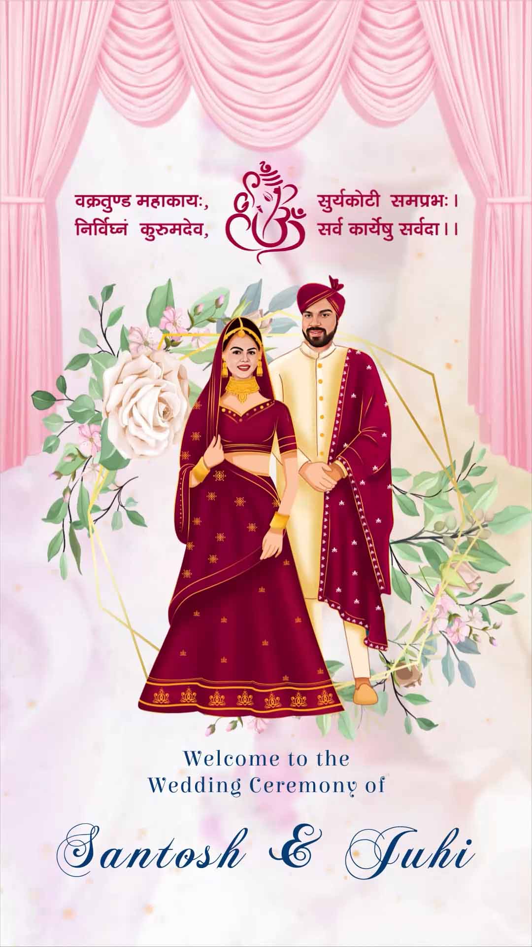 756 Marathi Font & Caricature Wedding Invitation