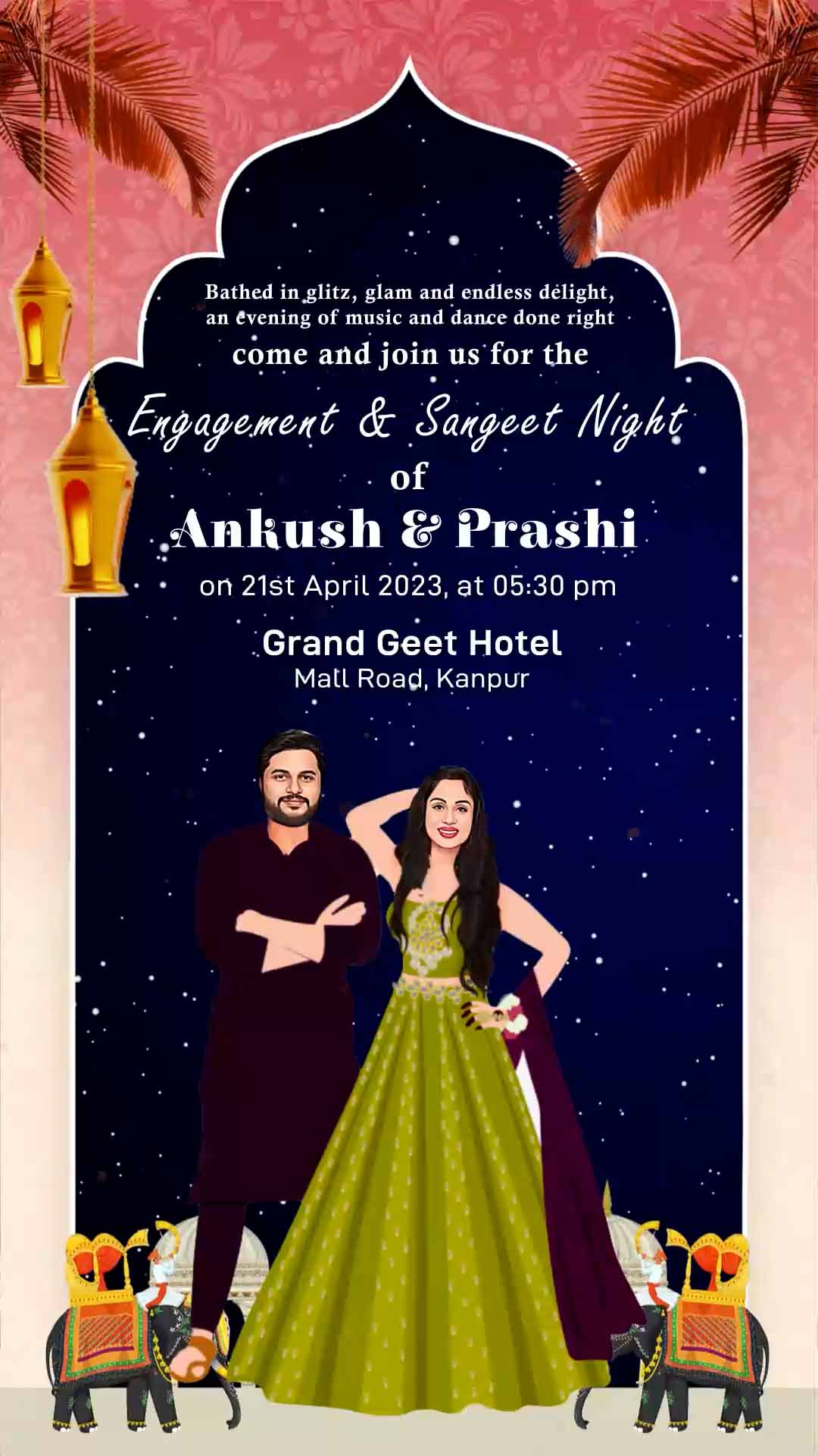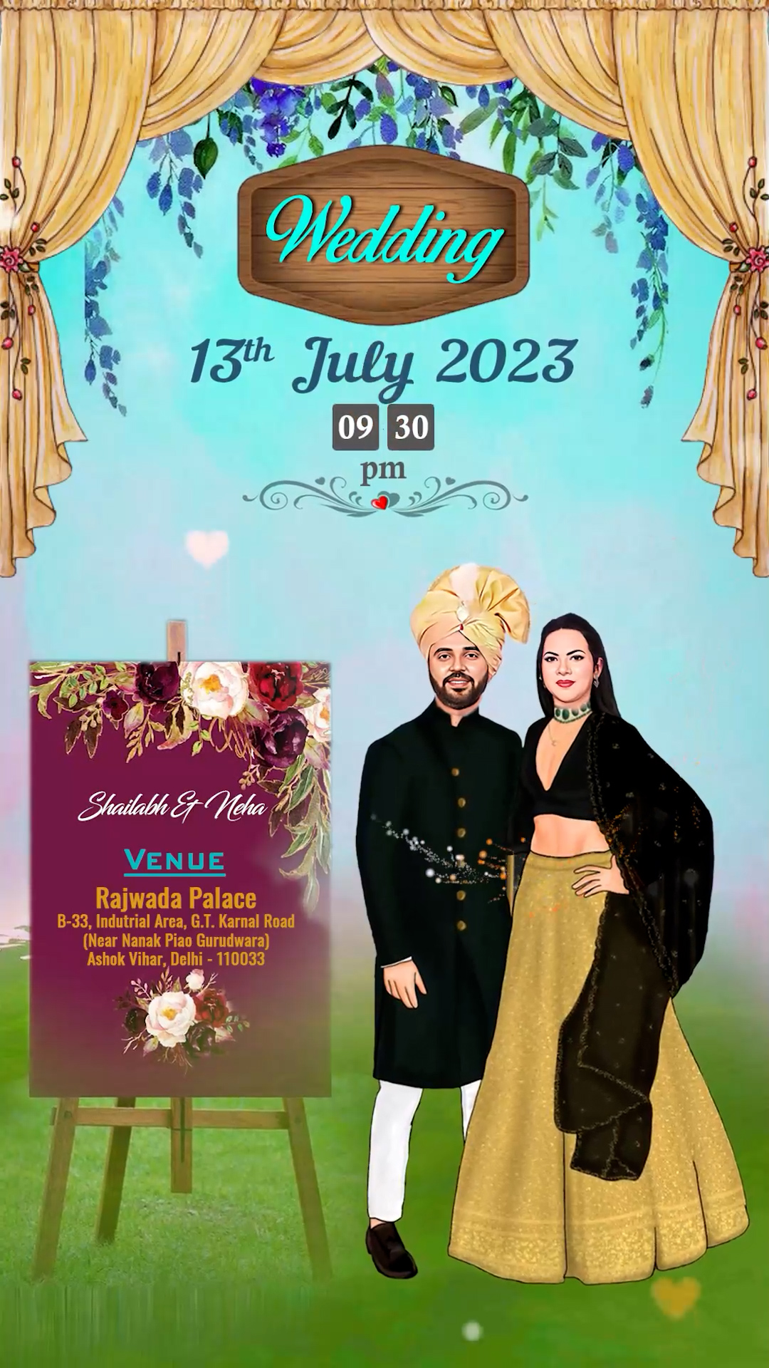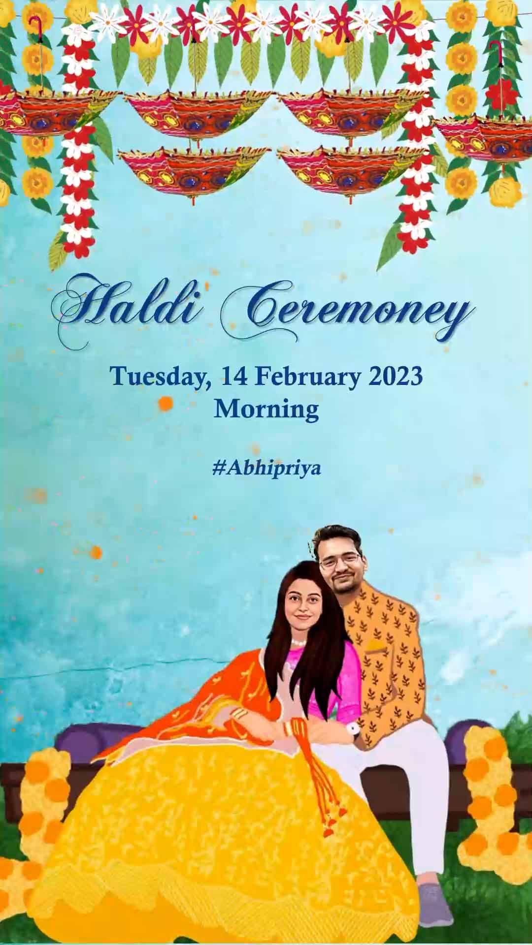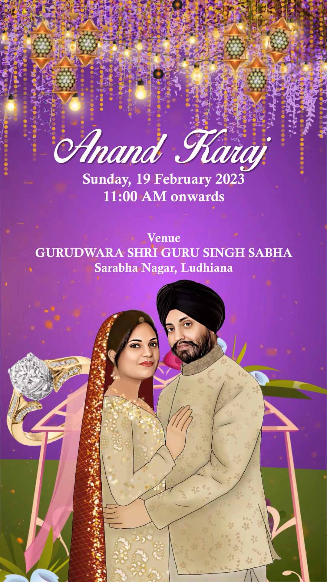 754 Story Telling & Caricature Punjabi Engagement Invitation