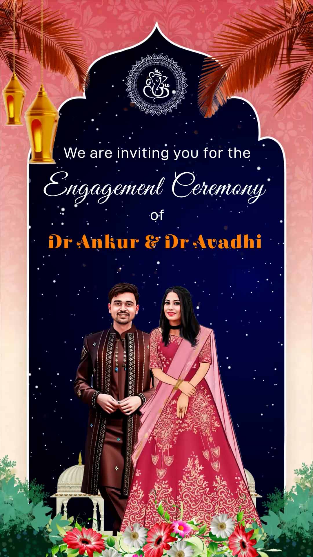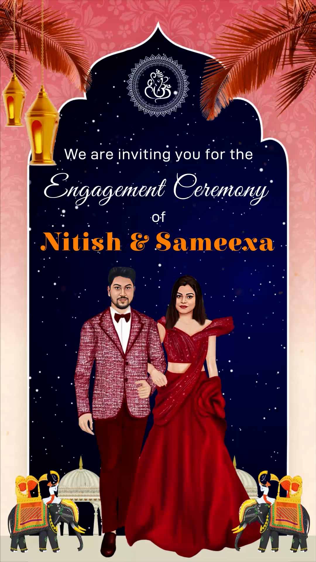 721 - Modern Look Caricature and Theme Engagement Invitation