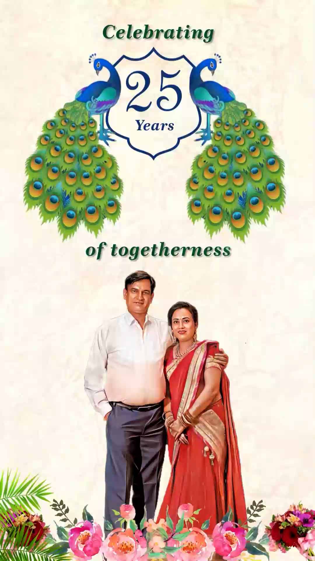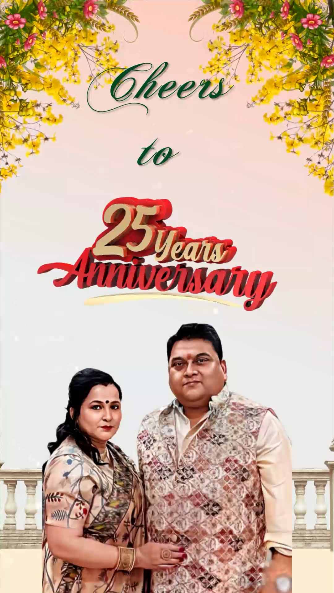 722 - Royal Look with Couple Caricature 25th Wedding Anniversary Invitation