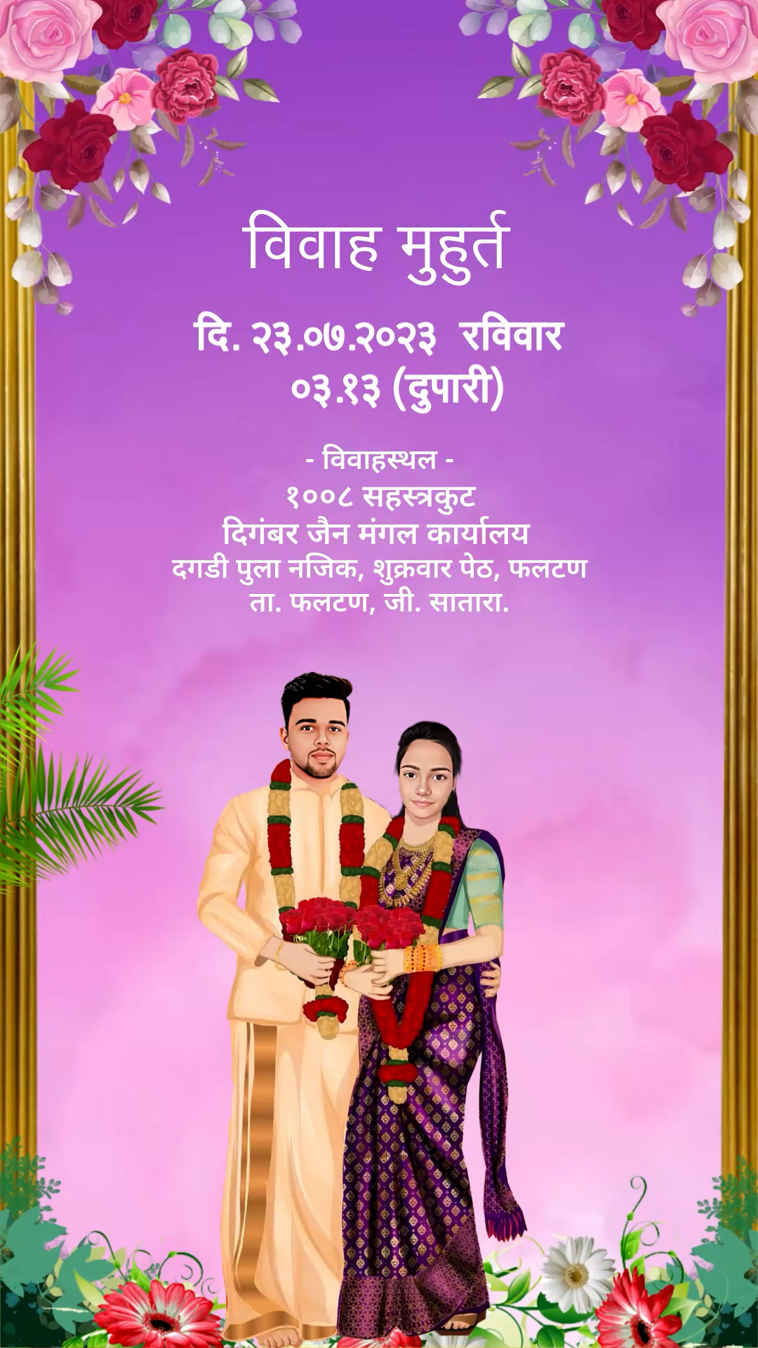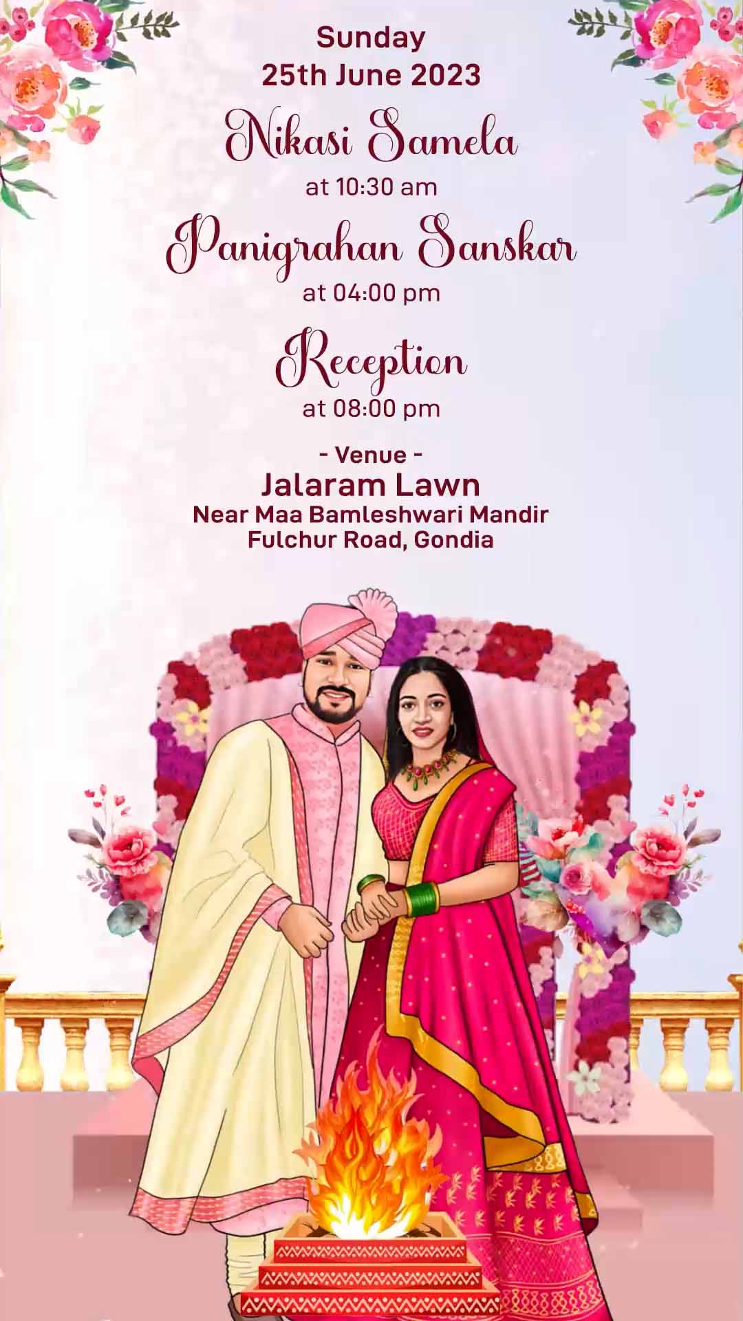 798 Floral & Caricature Jain Wedding Invitation