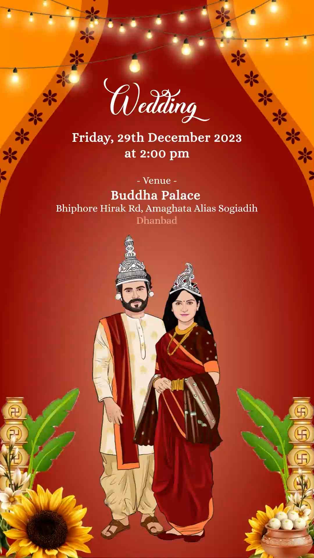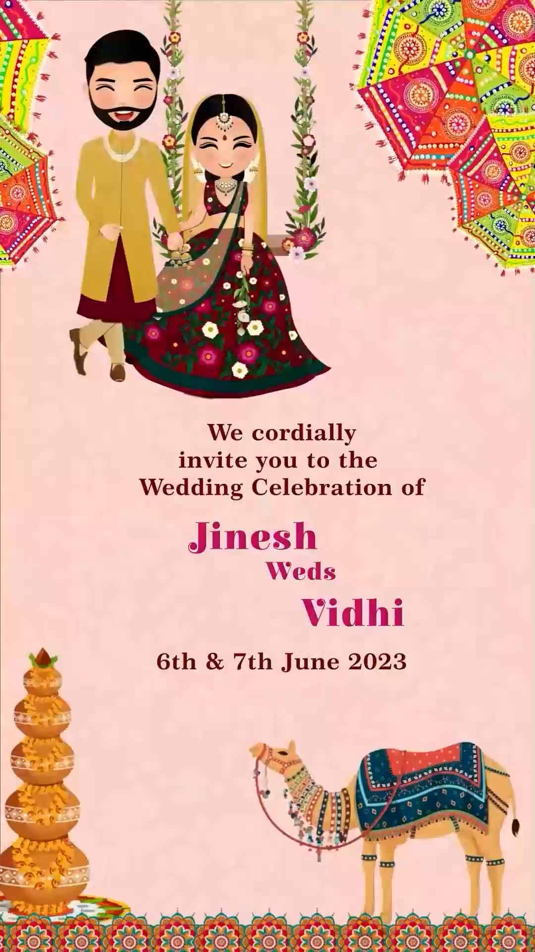 711 - Jain Wedding Invitation with Caricature