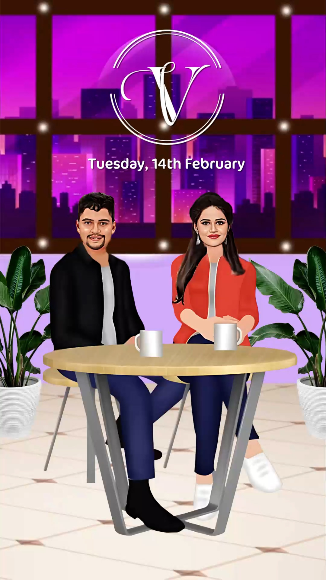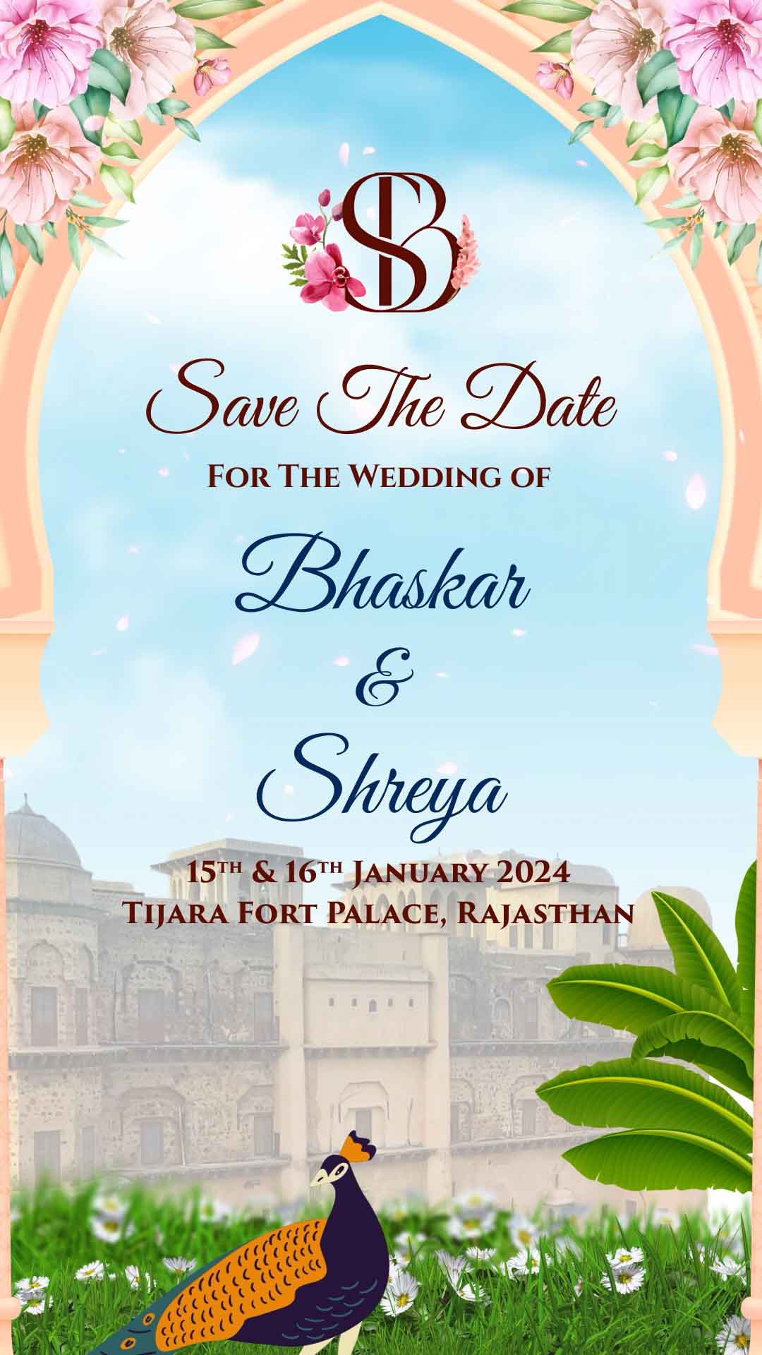 786 Floral & Caricature Save The Date Invitation