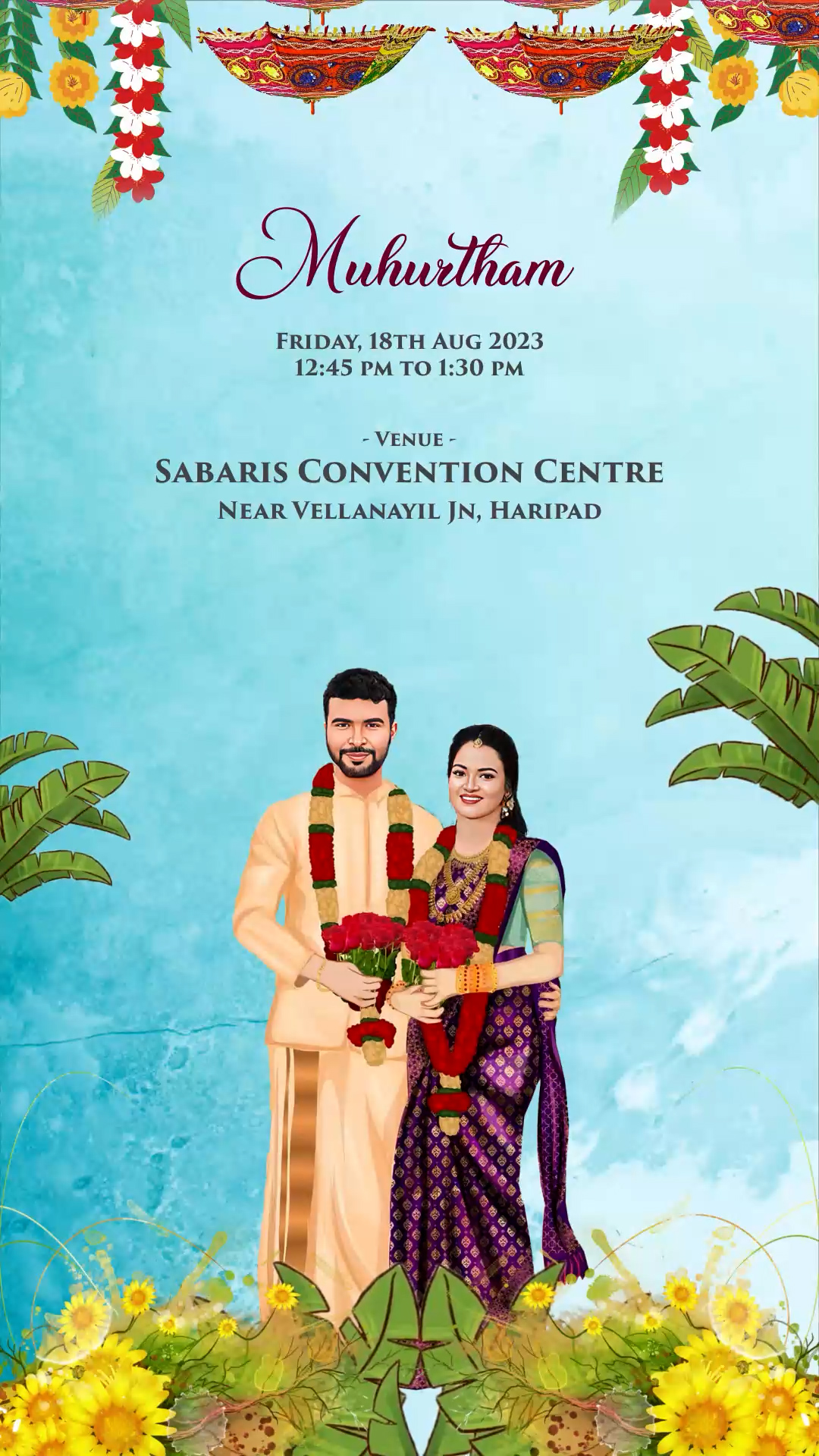 761 Caricature South Indian wedding Invitation