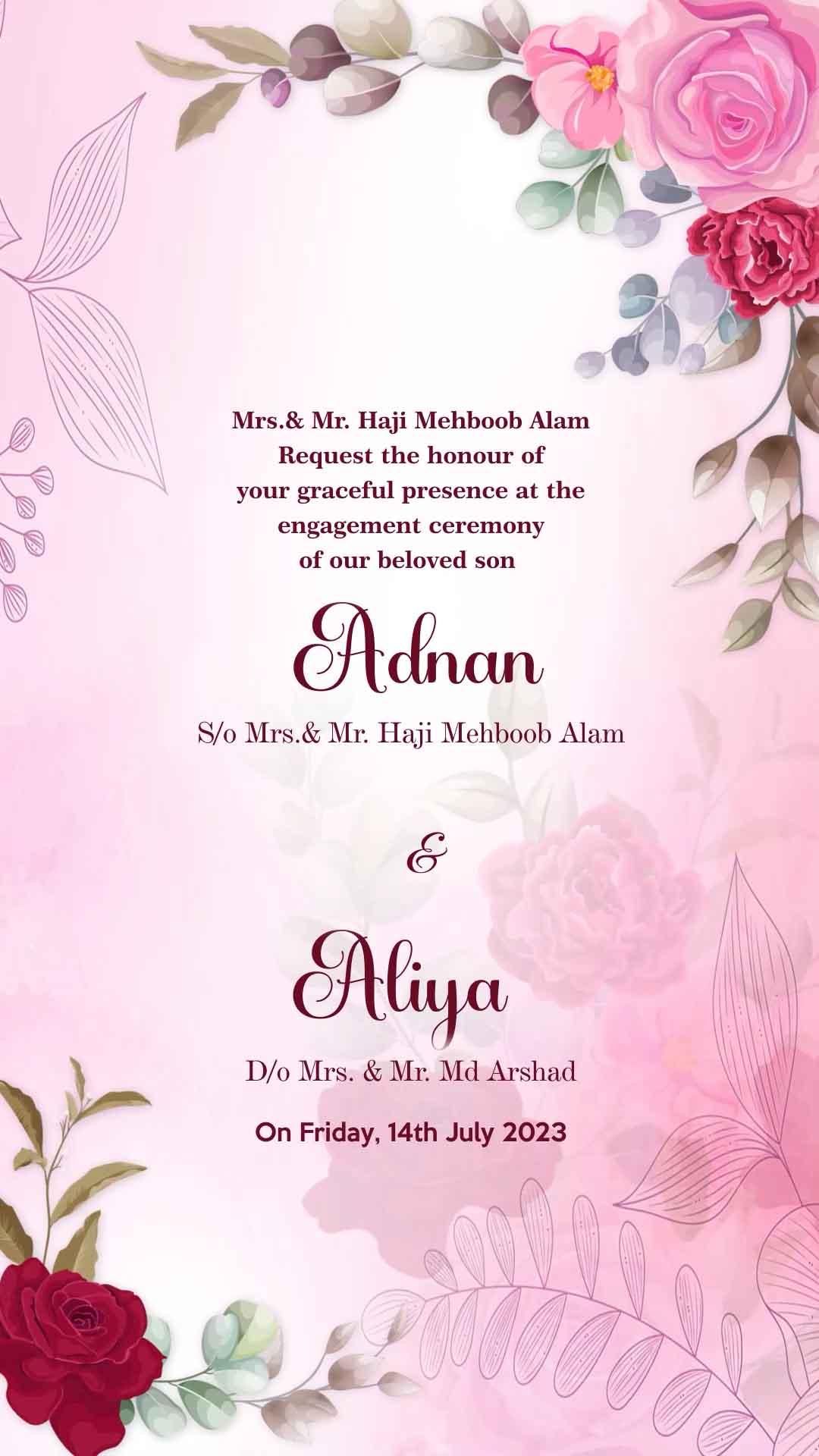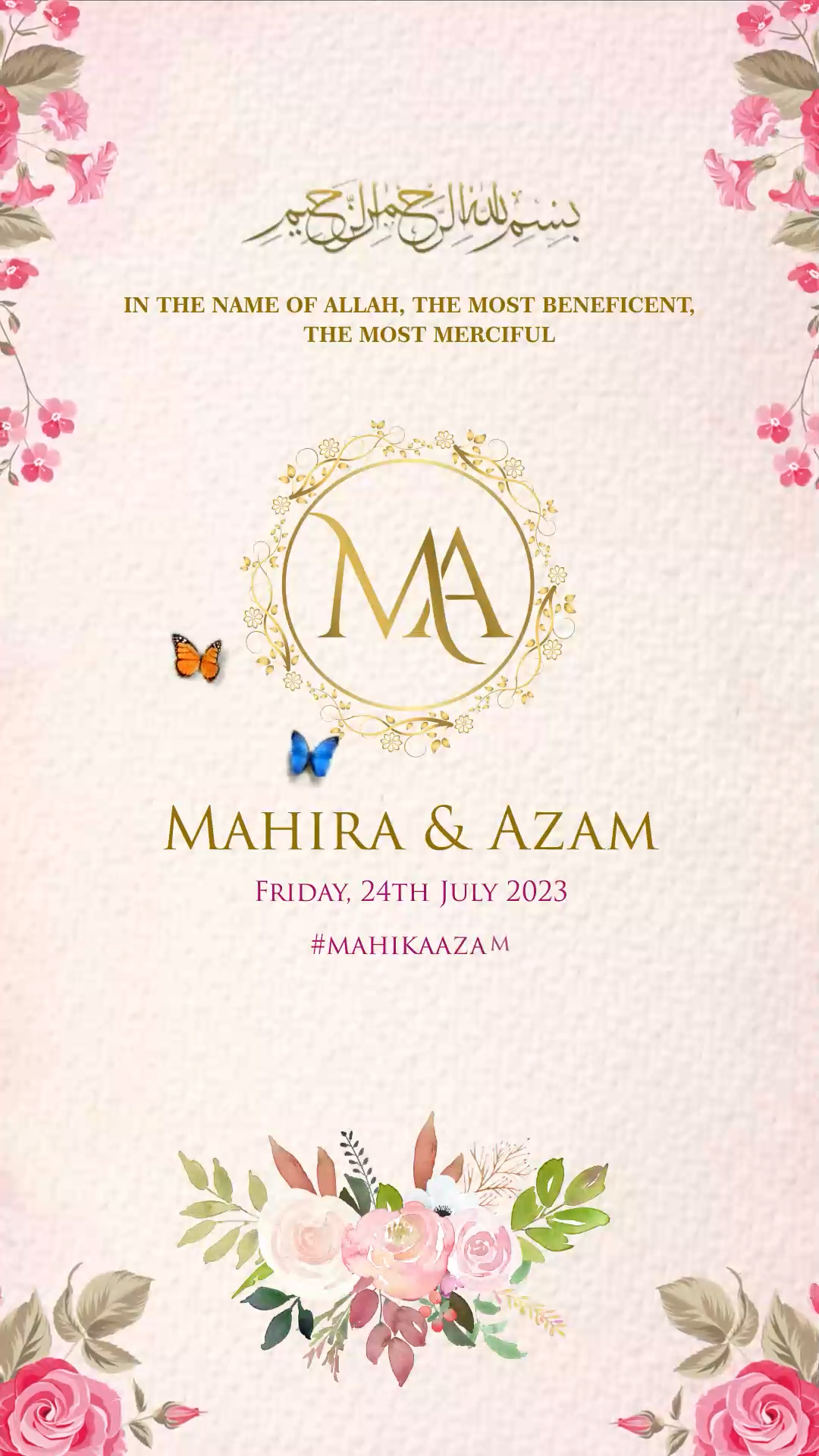 716 - Elegant Flowers Theme Muslim Wedding Invitation