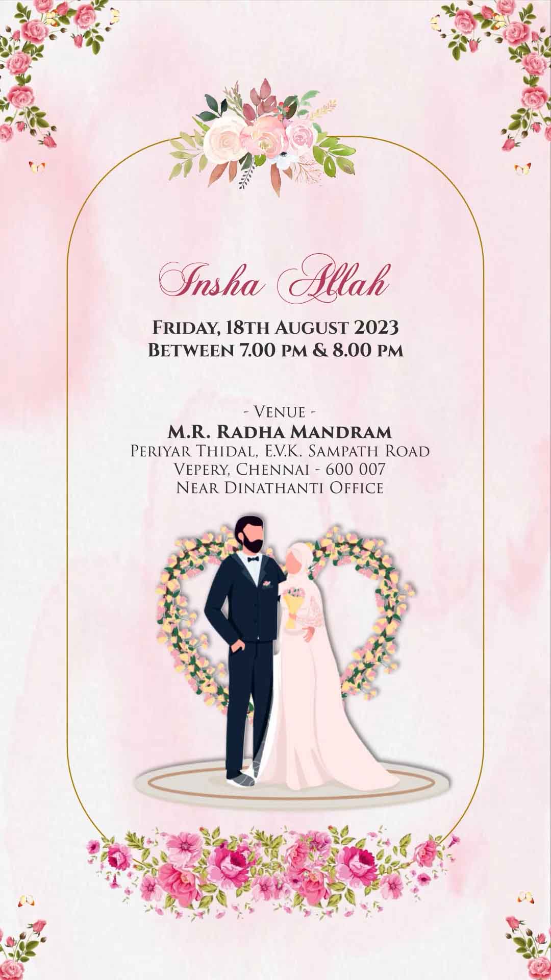 760 Floral & Cartoons Muslim Wedding Invitation